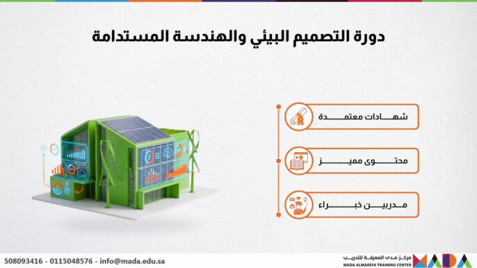 تُعد دورة التصميم البيئي والهندسة المستدامة خطوة أساسية نحو فهم مفاهيم البناء الأخضر وتحقيق توازن بين التنمية العمرانية وحماية البيئة. مع ارتفاع الطلب على الحلول المستدامة في قطاعات الهندسة والعمارة، أصبح من الضروري اكتساب المهارات الحديثة التي تواكب متطلبات سوق العمل العالمي والمحلّي.
