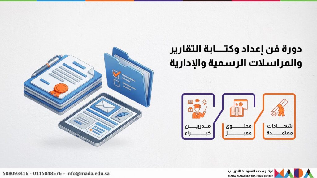 تُعد دورة فن إعداد وكتابة التقارير والمراسلات الرسمية والإدارية أداة فعّالة لتطوير الكفاءة الإدارية والاتصالية لدى العاملين في مختلف المستويات الوظيفية. تُسهم هذه الدورة في رفع مستوى الجودة في التواصل الكتابي داخل المؤسسات، مما ينعكس إيجابًا على كفاءة العمل، وسرعة اتخاذ القرار، واحترافية الصورة المؤسسية. تُعد هذه المهارات ضرورية لكل موظف إداري، مشرف، مدير، أو موظف دعم فني يحتاج إلى إعداد تقارير أو إرسال مراسلات رسمية. كما تُناسب الدورة حديثي التخرج الذين يسعون إلى دخول سوق العمل بإتقان لأساليب الكتابة المهنية. بفضل طابعها النظري والمنهجي، تُسهم دورة فن إعداد وكتابة التقارير والمراسلات الرسمية والإدارية في بناء قاعدة معرفية رصينة تُمكّن المتدربين من إنتاج وثائق رسمية تتماشى مع المعايير المهنية، وتعزز من مصداقيتهم واحترافيتهم في بيئة العمل.