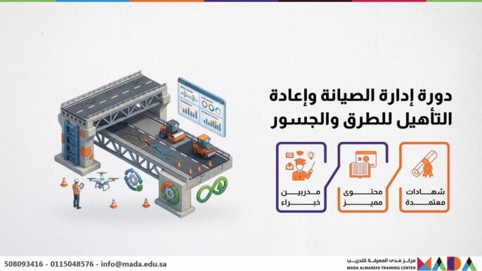 تُعد دورة إدارة الصيانة وإعادة التأهيل للطرق والجسور من الدورات الحيوية التي تواكب احتياجات سوق العمل، حيث تركز على تطوير المهارات الفنية والإدارية اللازمة لإدارة مشاريع البنية التحتية. يتيح مركز مدى المعرفة للتدريب فرصة فريدة لتعلم دورة إدارة الصيانة وإعادة التأهيل للطرق والجسور، لتلبية متطلبات الصيانة الحديثة وضمان استدامة المشاريع.