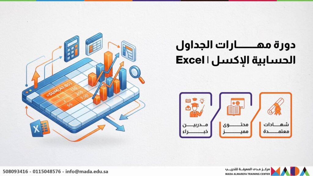 تُعد دورة مهارات الجداول الحسابية الإكسل | Excel عنصرًا أساسيًا في بناء كفاءات قادرة على التعامل مع البيانات بفعالية، خاصة في ظل الاعتماد المتزايد على التحليل الرقمي في جميع المجالات. تُعد هذه الدورة ذات أهمية بالغة للموظفين الإداريين، المحاسبين، المديرين، ومحللي البيانات في المؤسسات الحكومية، الشركات، والمؤسسات التعليمية. كما تُسهم في تعزيز القدرة على تنظيم المعلومات، واتخاذ قرارات مدروسة، وتقديم تقارير دقيقة واحترافية. في بيئة عمل تعتمد على الدقة، والسرعة، والشفافية، يُعد فهم مهارات Excel أمرًا بالغ الأهمية لضمان الكفاءة التشغيلية، وتقليل الأخطاء، وتحقيق التميز في الأداء. تقدم الدورة معرفة نظرية متقدمة تُمكّن المشاركين من التفكير الاستباقي في استخدام البيانات، وتدعم تطوير مهنيين قادرين على المساهمة في تحسين الأداء المؤسسي من خلال الأدوات الرقمية.